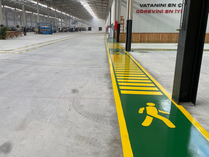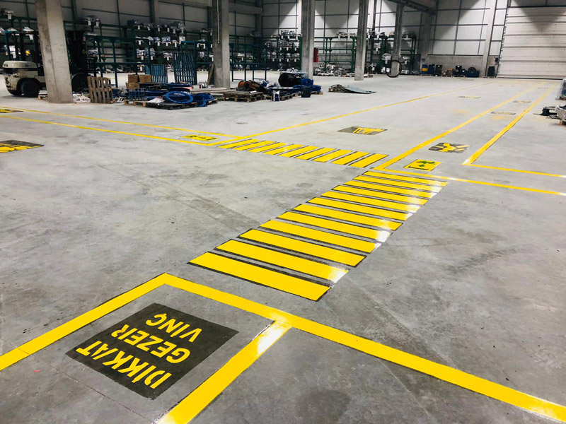 Fabrika, atölye ve depo içlerine çizgi uygulaması yapıyoruz. fabrikalarda çaılşama alanlarını, yürüme yollarını, malzeme geliş ve gidiş yollarını ve forklift yollarının işaretlemesini ve çizgilerini yapıyoruz. Bina içi çizgi uygulaması çok önemlidir. Bu çizgiler güvenliği sağlama açısından da çok önemlidir. Bina içlerine sarı ve siyah boyalarla çizgi uygulaması yapılır. Çizilen çizgiler kolaylıkla deforme olmaz. Eski görünümünü korur. Geçen zaman içinde pek çok bina içi çizgi uygulaması yaptık. Çizgi uygulaması talepleriniz de firmamızla irtibat kurabilirsiniz.