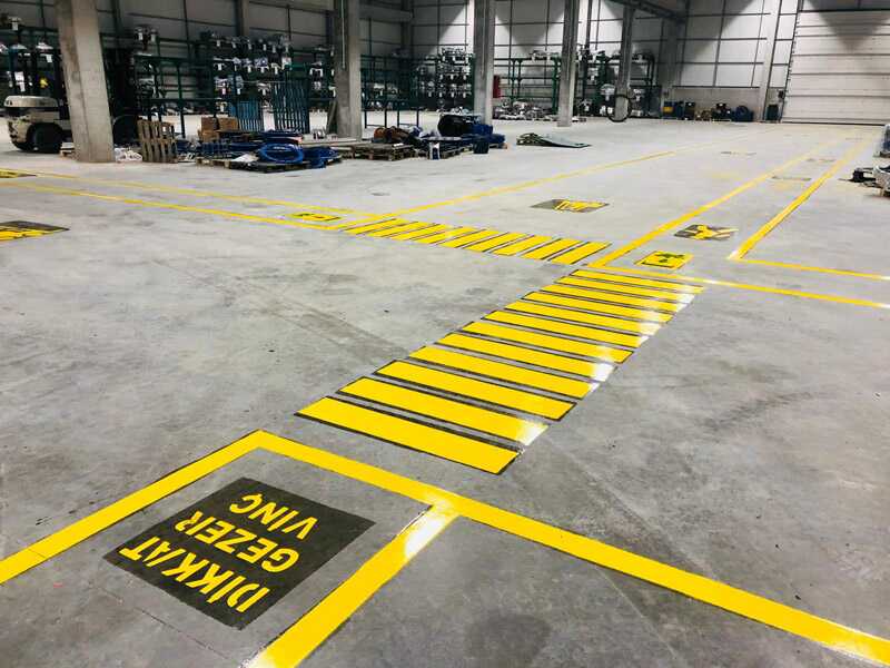 Fabrika, atölye ve depo içlerine çizgi uygulaması yapıyoruz. fabrikalarda çaılşama alanlarını, yürüme yollarını, malzeme geliş ve gidiş yollarını ve forklift yollarının işaretlemesini ve çizgilerini yapıyoruz. Bina içi çizgi uygulaması çok önemlidir. Bu çizgiler güvenliği sağlama açısından da çok önemlidir. Bina içlerine sarı ve siyah boyalarla çizgi uygulaması yapılır. Çizilen çizgiler kolaylıkla deforme olmaz. Eski görünümünü korur. Geçen zaman içinde pek çok bina içi çizgi uygulaması yaptık. Çizgi uygulaması talepleriniz de firmamızla irtibat kurabilirsiniz.